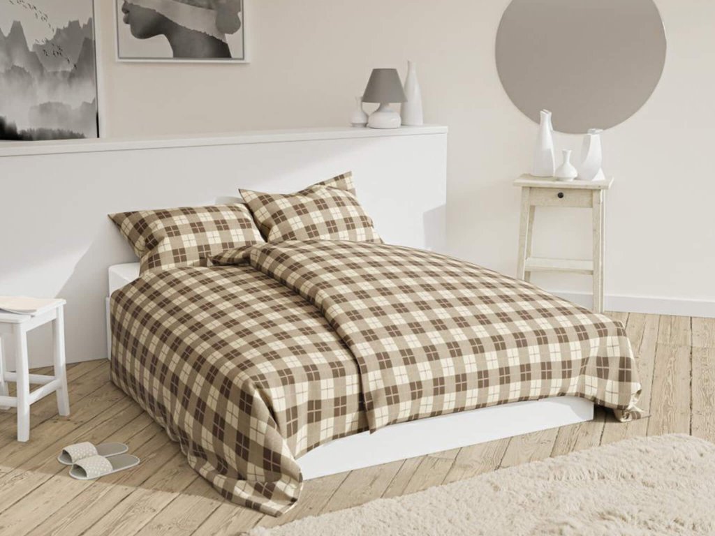 Postelové povlečení jsou neodmyslitelnou součástí každé ložnice. Naše postelové povlečení Klarisa vytváří z vaší ložnice oázu pokoje a komfortu. Povlečení je určeno na polštář a peřinu. Je vyrobeno ze 100 % bavlny, která je certifikována OekoTex 100 a potvrzuje své vysoké standardy kvality a bezpečnosti při styku s pokožkou. Karovaný design v béžovém odstínu je vhodný do ložnice či dětského pokoje. Materiál povlečení připomíná len, je matný a po vyprání se stane měkkým a hladkým. Povlečení se zapíná bílým zipem s prošíváním. Plastový zip není pro alergiky škodlivý. Doporučuje se prát povlečení naruby při teplotě do 40°.