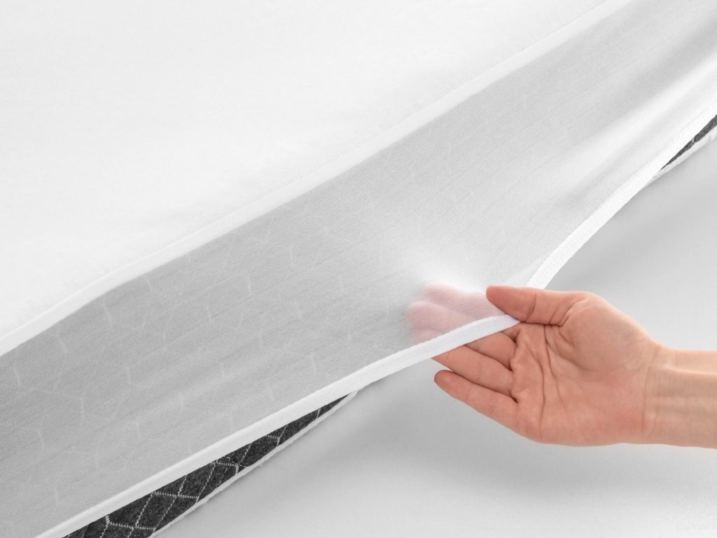 - Boky chrániče matrace jsou vyrobeny z prodyšného, pružného síťovaného materiálu