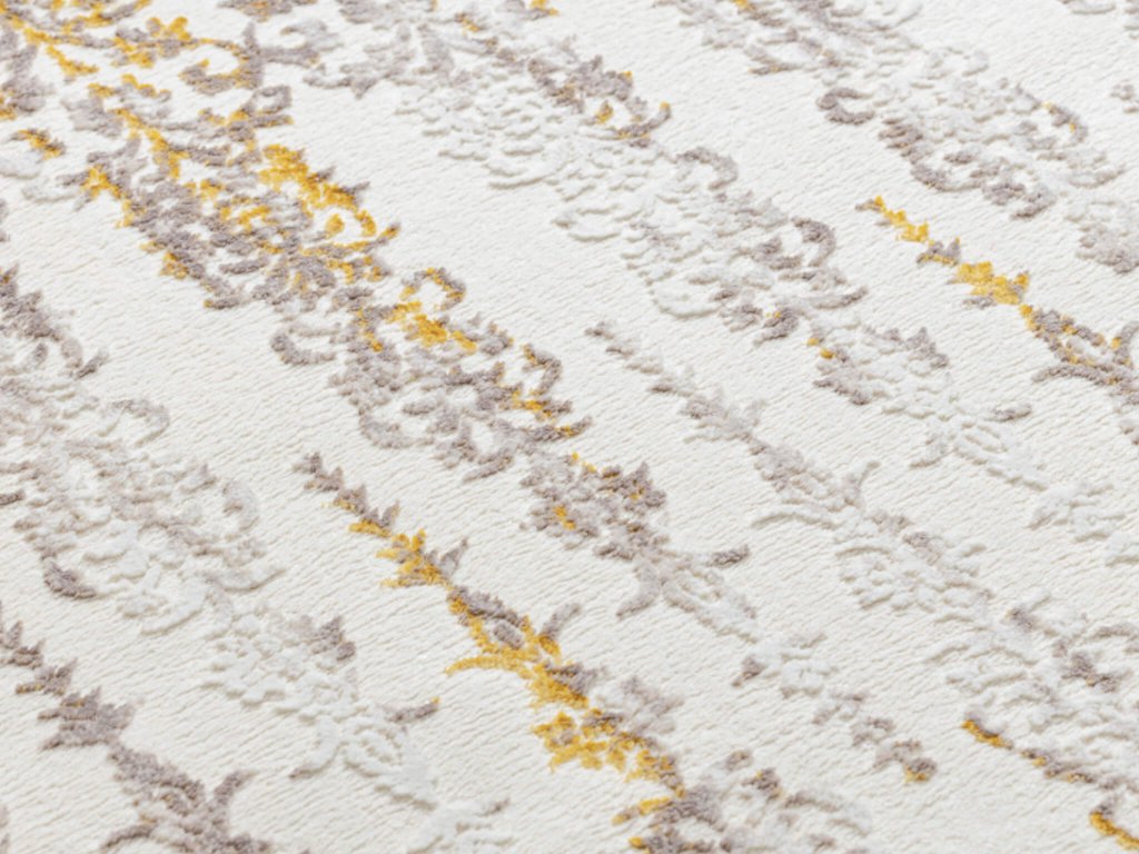 Koberec Recon je dokonalou kombinací elegance a funkcionality, který přinese do vašich interiérů novou dimenzi. Tento kousek spojuje kvalitní materiály a design, který osloví všechny vkusy. Jeho základ tvoří kombinace polypropylenu a polyesteru, což zajišťuje nejen opravdu dlouhou životnost, ale také měkkost a příjemný pocit při dotyku. Výrazný ornamentový vintage vzor se dvěma délkami vlasu vytváří koberci více hloubky a dodává pokoji stylový charakter. Jeho odstíny béžové barvy se zlatými prvky dodávají koberci luxusní vzhled, což jej činí vhodným do moderních i klasických interiérů. Tento koberec není jen krásný, ale také pohodlný na chůzi či sezení. Navíc je ideální pro použití s podlahovým topením, což vám umožní užívat si tepla a pohodlí ve vašem domě. Ať už hledáte dokonalý koberec pro ložnici, obývací pokoj nebo chodbu, koberec Recon je tady, aby splňoval vaše nároky na styl, pohodlí a trvanlivost. Udělejte z vašeho domova místo, které vás bude těšit každý den s tímto výjimečným kobercem.