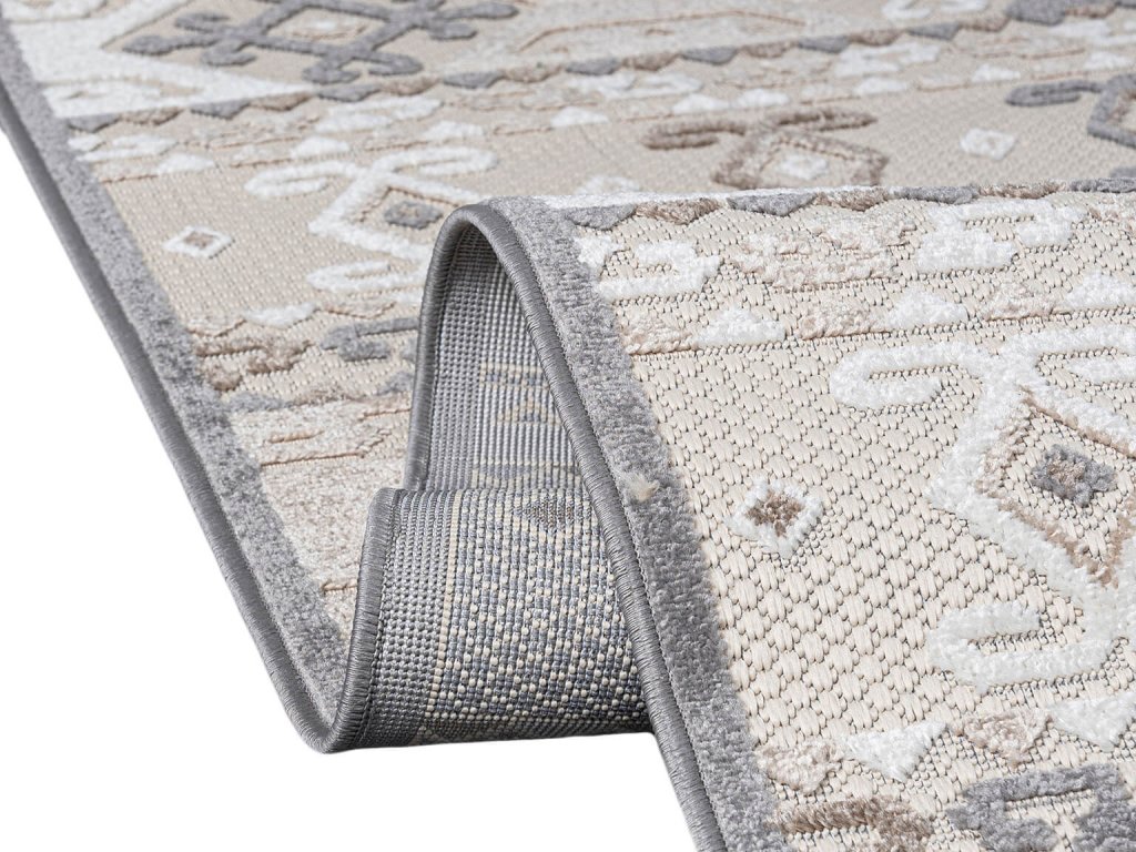 Béžový koberec s ornamenty disponuje hustými štětinami 1500g/m2 a má 6 milimetrů nízký vlas, určitě oceníte jeho snadnou údržbu. Orientální koberec vyrobený z měkkých a pružných vláken a jeho vlastností je vysoká odolnost proti oděru. Designový koberec je vhodný do jakéhokoli pokoje vašeho interiéru, ať tradičního nebo moderního.