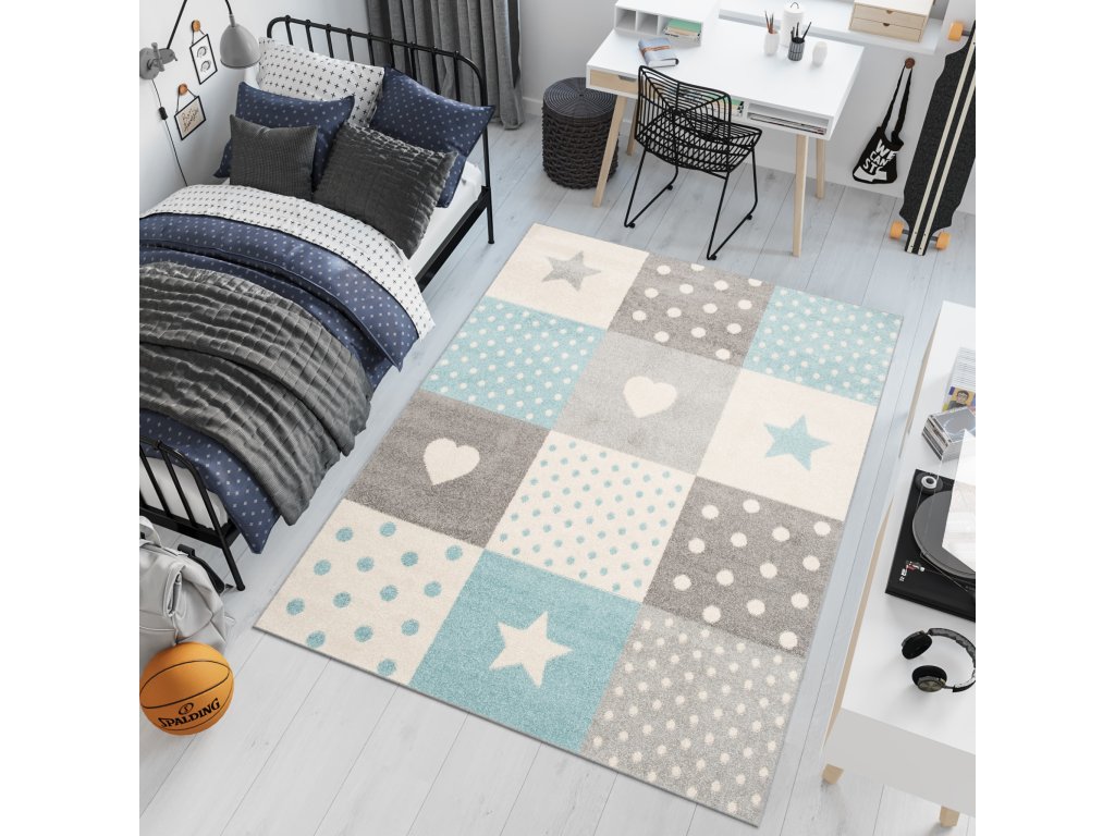 Bílo-modrý vzorovaný dětský koberec Ruth