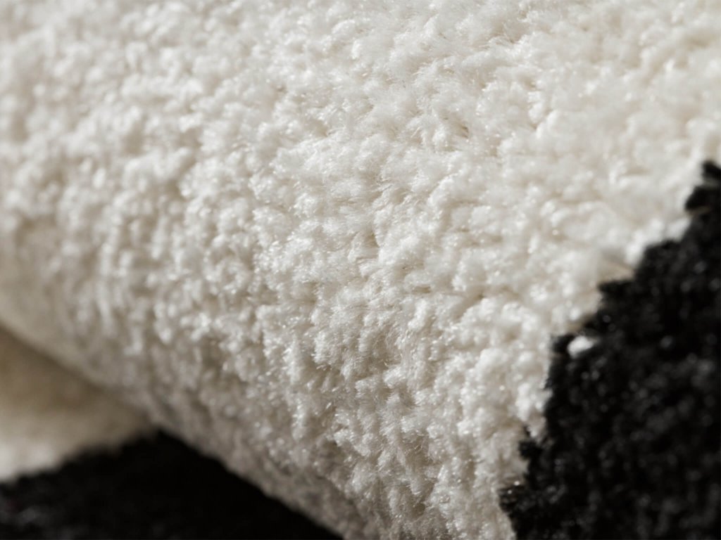 Kulatý koberec černobílý Míč je určen pro děti do dětských pokojů. Každý milovník fotbalu se potěší koberci, který má design míče. Výška vlasu koberce je 10 mm je vhodný i pro podlahové topení. Hustota vlákna je 2000 g/m². Polypropylenová (PP) vlákna jsou měkká a pružná díky tepelnému zpracování a své perleťové textuře připomínají ručně tkané koberce. V případě čištění koberce vám postačí vysavač nebo obyčejný mírně navlhčený hadřík. Koberec se vyznačuje certifikátem OEKO-TEX, to znamená, že všechny materiály jsou bezpečné a nejsou zdraví škodlivé pro vaše děti. Je k dispozici ve více rozměrech.