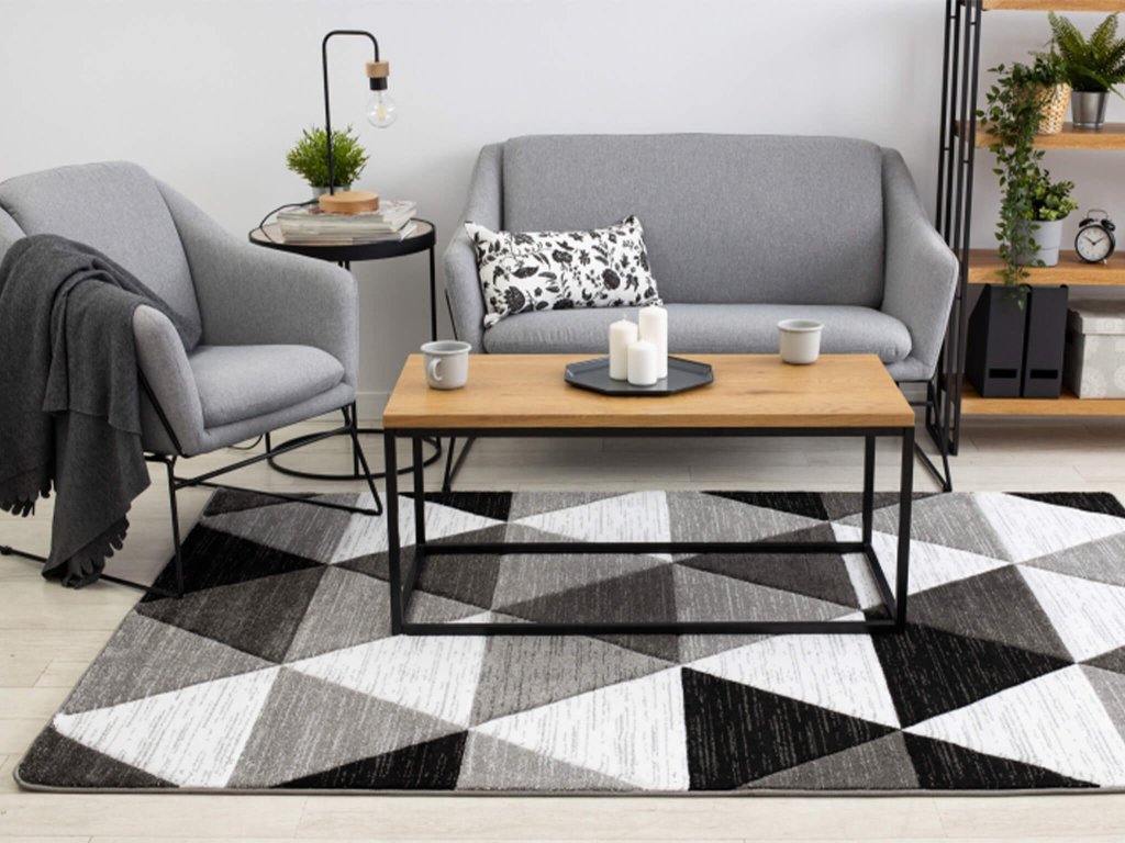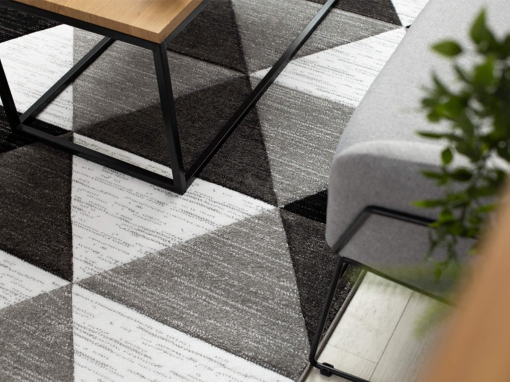 Černo-bílý geometrický koberec Triangell