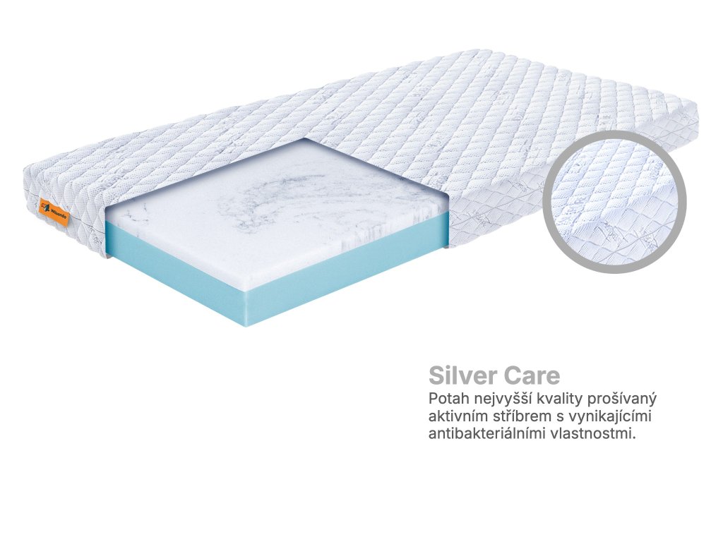 Velkou výhodou je i potah Silver, který má antibakteriální vlastnosti díky obsahu stříbrných vláken. Potah je odzipovatelný a pratelný v pračce při teplotě 60 °C, což zaručuje jednoduchou údržbu a neustálou svěžest.