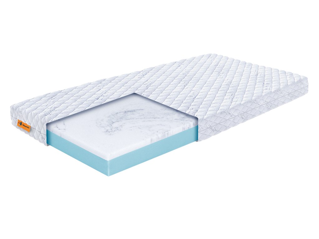 Nostná deska z polyuretanové pěny s vyšší hustotou zajišťuje dlouhodobou tvarovou stálost a podporu páteře během celého období používání. Všechny použité materiály jsou hypoalergenní, díky čemuž je matrace vhodná i pro citlivé děti a alergiky.