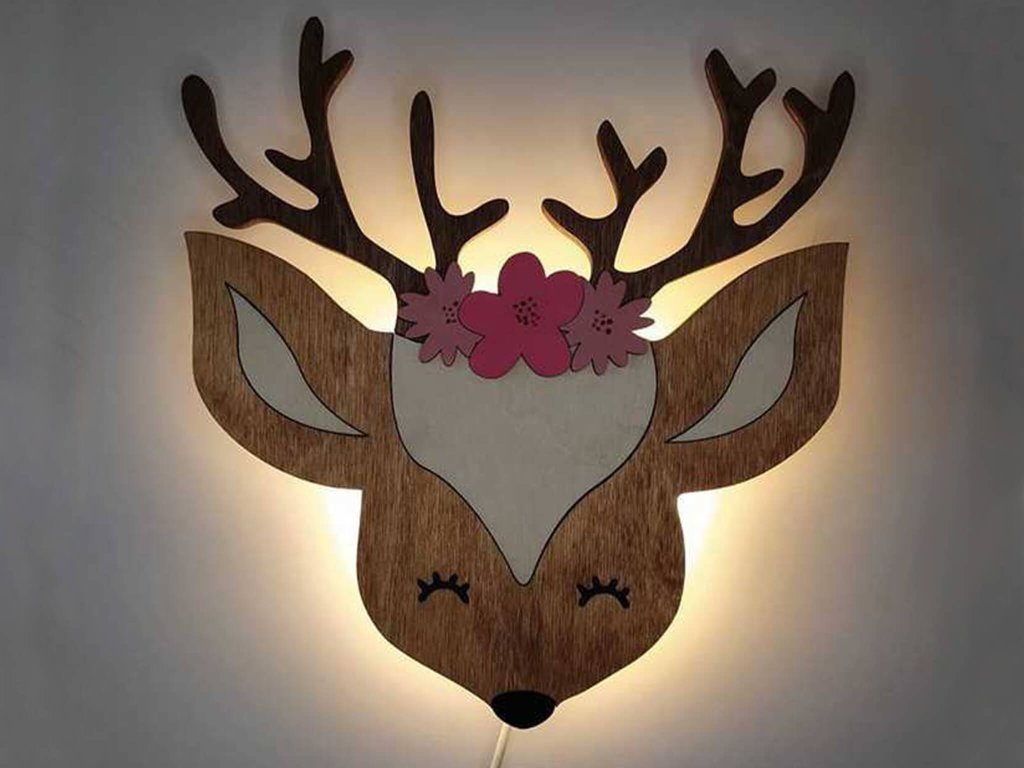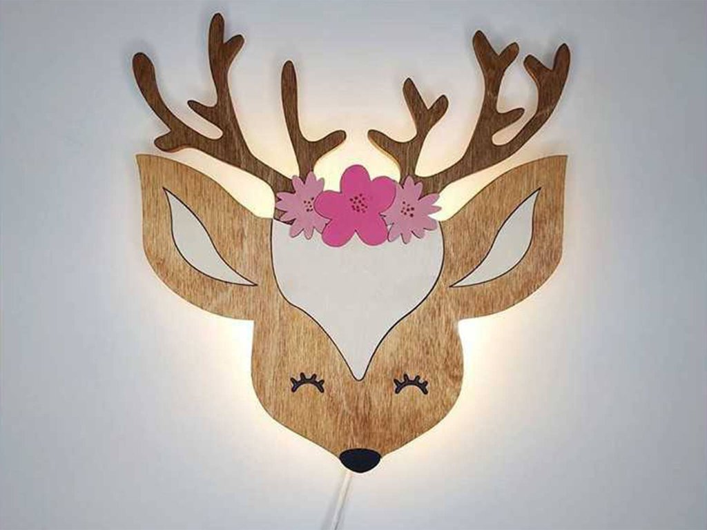 Dětská dřevěná LED lampa Jelen