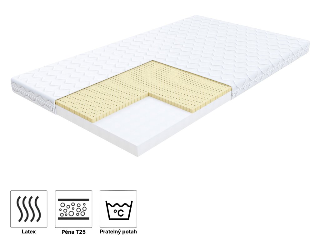 Materiálové složení: Polyuretanová pěna, Prodyšná tkanina, Latex, Potah