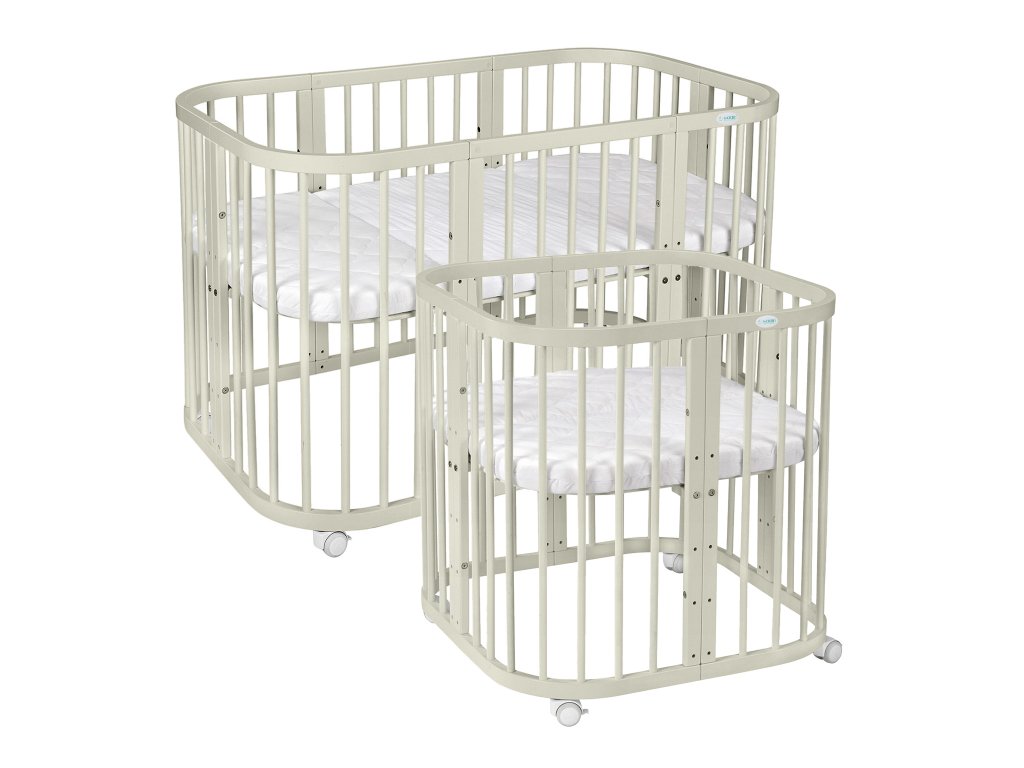 Jak dítě roste, potřebuje více prostoru. Z toho důvodu se od přibližně 6 do 36 měsíců doporučuje spojit všechny díly do větší postýlky. Když rošt snížíte do nejnižší polohy, vznikne vám pohodlná ohrádka na hraní nebo nízká postýlka, do které si dítě může samo vlézt. Když dítě z postýlky vyroste, můžete ji opět rozmontovat na tři části: dvě křesílka a stolek, u kterého si děti mohou hrát, kreslit nebo jíst.