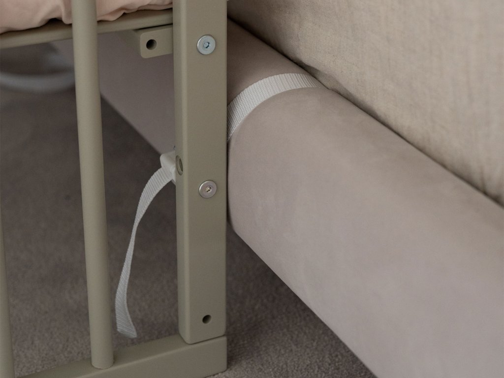 Rostoucí postýlka je vyrobena z bukového dřeva a má ekologický nátěr na bázi vody. Tento produkt splňuje všechny bezpečnostní požadavky. Třídílná matrace je z pěny s tvrdostí T25 s bavlněným potahem. Výška postýlky se dá nastavit do 5 poloh, od 7 cm, když postýlku využíváte jako ohrádku pro dítě, až po 49 cm v nejvyšší poloze. Pokud si k postýlce namontujete i gumová kolečka, bude výška postýlky v nejvyšší poloze 55 cm.