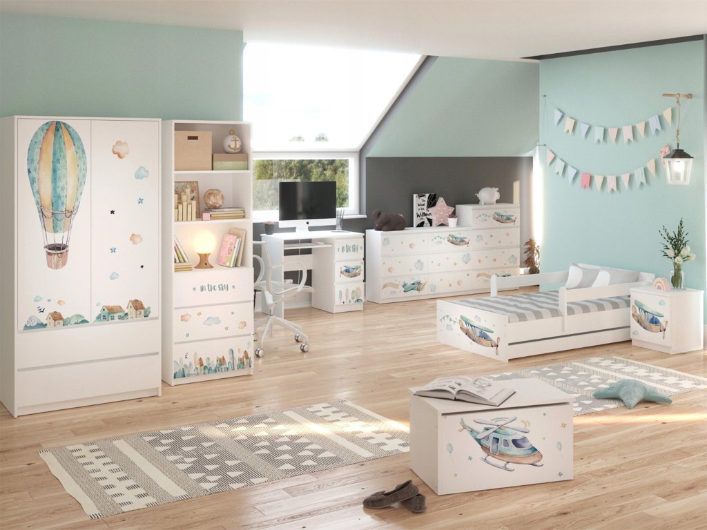 Dětský pokoj s pěkným motivem z kolekce Letadla je vyroben z kvalitní laminované desky (DTD). Díky použitým přírodním materiálům je 100% ekologický, bezpečný a zdravotně nezávadný. Nábytek je potištěn speciálním laminátem a při znečištění ho stačí vyčistit saponátem. Vaše dítě si tento typ nábytku rychle zamiluje a pokoj bude pro něj příjemným místem, ve kterém se bude cítit bezpečně. Nábytek je vhodný jak do dívčího, tak i do chlapeckého pokoje.