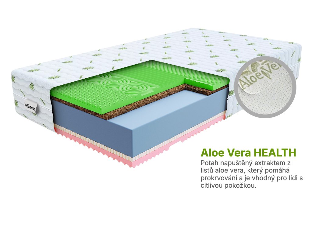 Materiálové složení: Profilovaná studená HR pěna, Latex, Kokos, Polyuretanová pěna, Profilovaná paměťová VISCO pěna