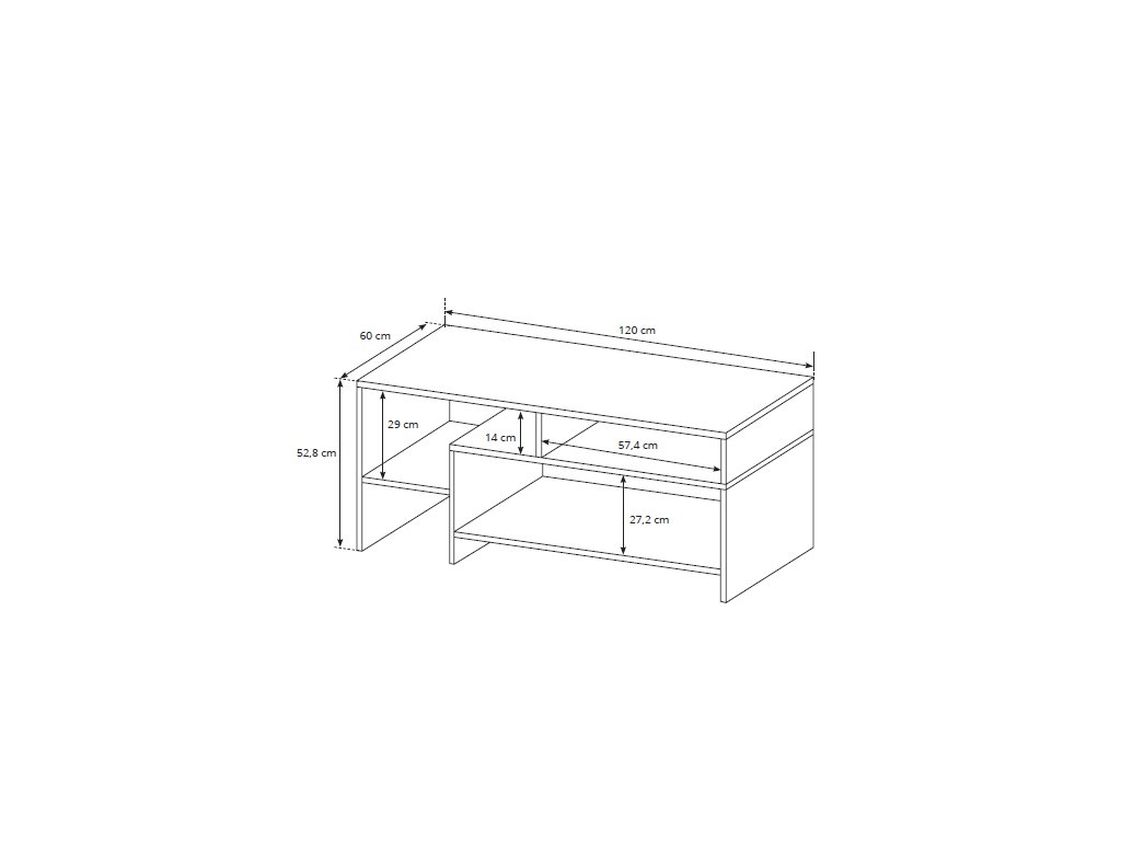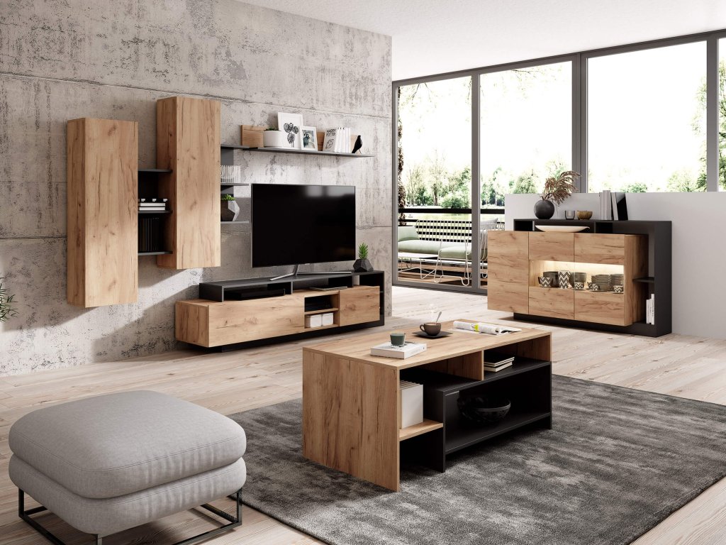 Designový konferenční stolek Alva je vyroben z vysoce kvalitní laminované desky (DTD) o tloušťce 16 mm, která je odolná proti poškrábání, vlhkosti a vysoké teplotě. Nábytek se vyznačuje kvalitními ABS hranami a bezúchytkovým systémem. Je vyroben v krásné kombinaci zlatého dubu s antracitem. Konferenční stolek poskytuje dostatek úložného prostoru, protože je tvořen čtyřmi policemi různých rozměrů.