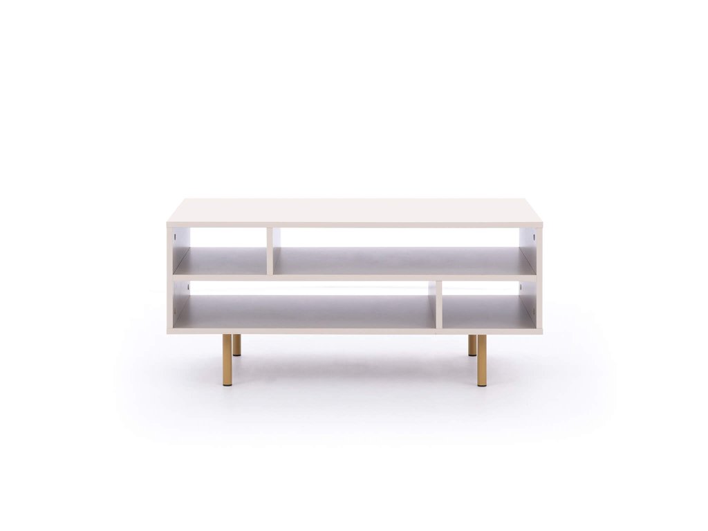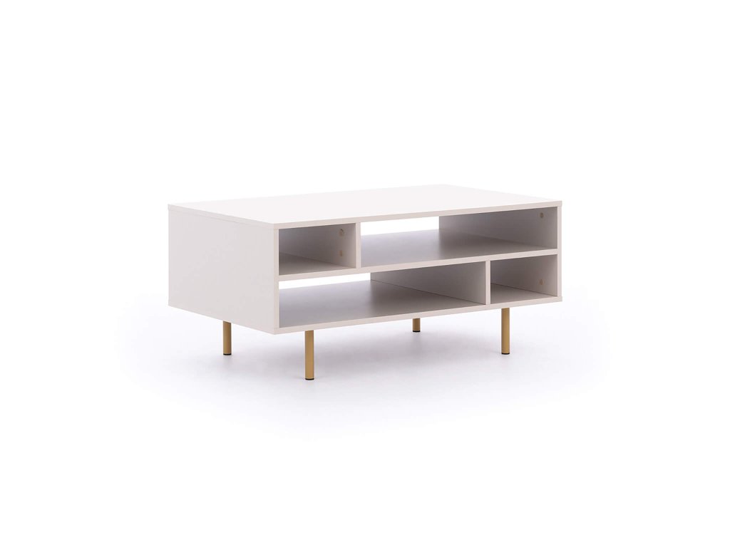 Béžový konferenční stolek NUBIA NB-03 vám pomůže rozumně a elegantně zařídit váš interiér. S jeho praktickým úložným prostorem hravě pohostíte každou návštěvu, přičemž každá věc si najde své místo. Disponuje otevřeným úložným prostorem, jelikož má čtyři police kam odložit noviny, knihu či dálkový ovladač. Vysoké kovové nožičky ve zlaté barvě působí elegantně ba až luxusně.