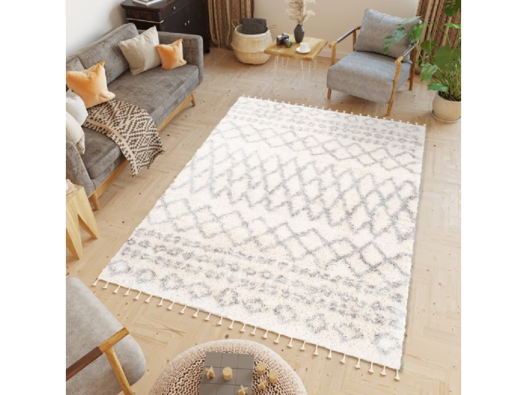 Krémový shaggy koberec Croman