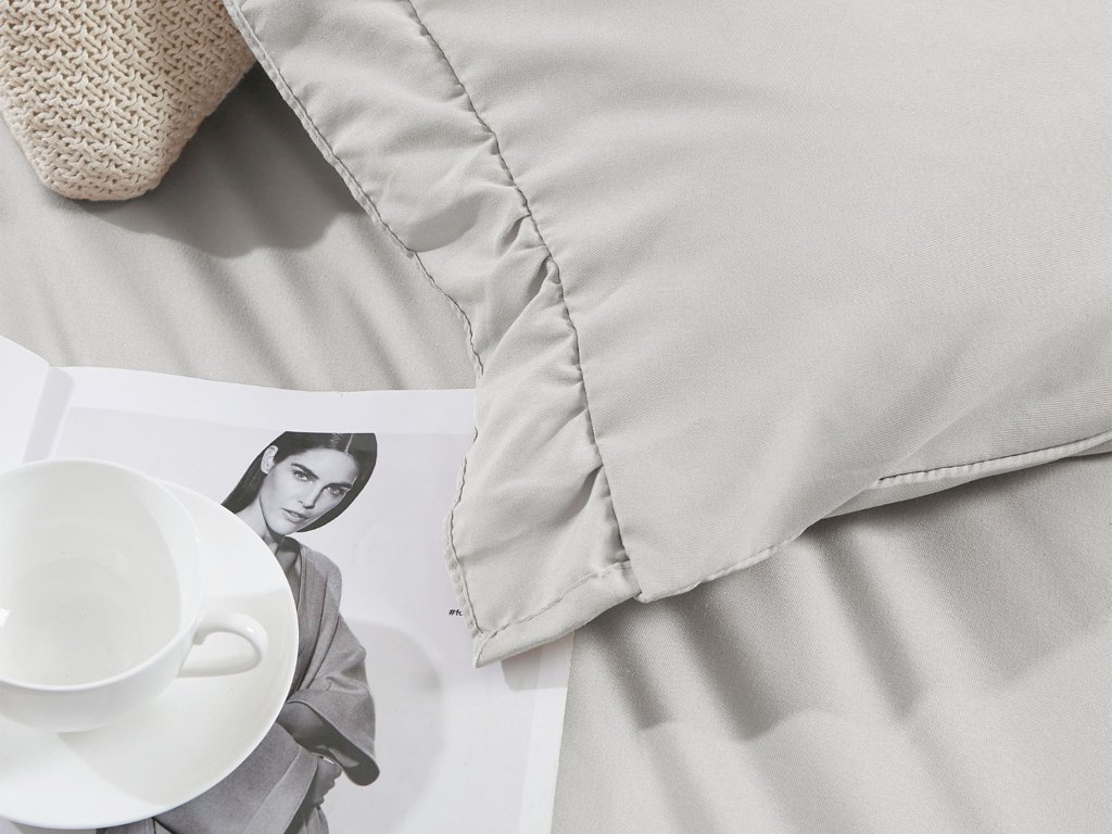Vytvořte si v ložnici atmosféru plnou elegance a komfortu. Šedé povlečení Ruffy s decentními volánky je ideální do vaší postele. Set obsahuje povlak/povlaky na polštáře i peřinu. Toto kvalitní povlečení je vyrobeno ze 100 % mikrovlákna. Syntetická látka je známá svou pevností, odolností vůči skvrnám a dlouhou životností. Navíc, povlečení z mikrovlákna je příjemné na dotek, snadno se čistí a výborně zadržuje teplo.