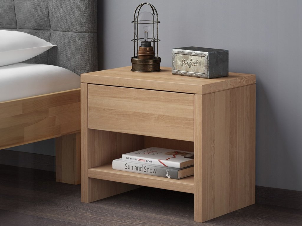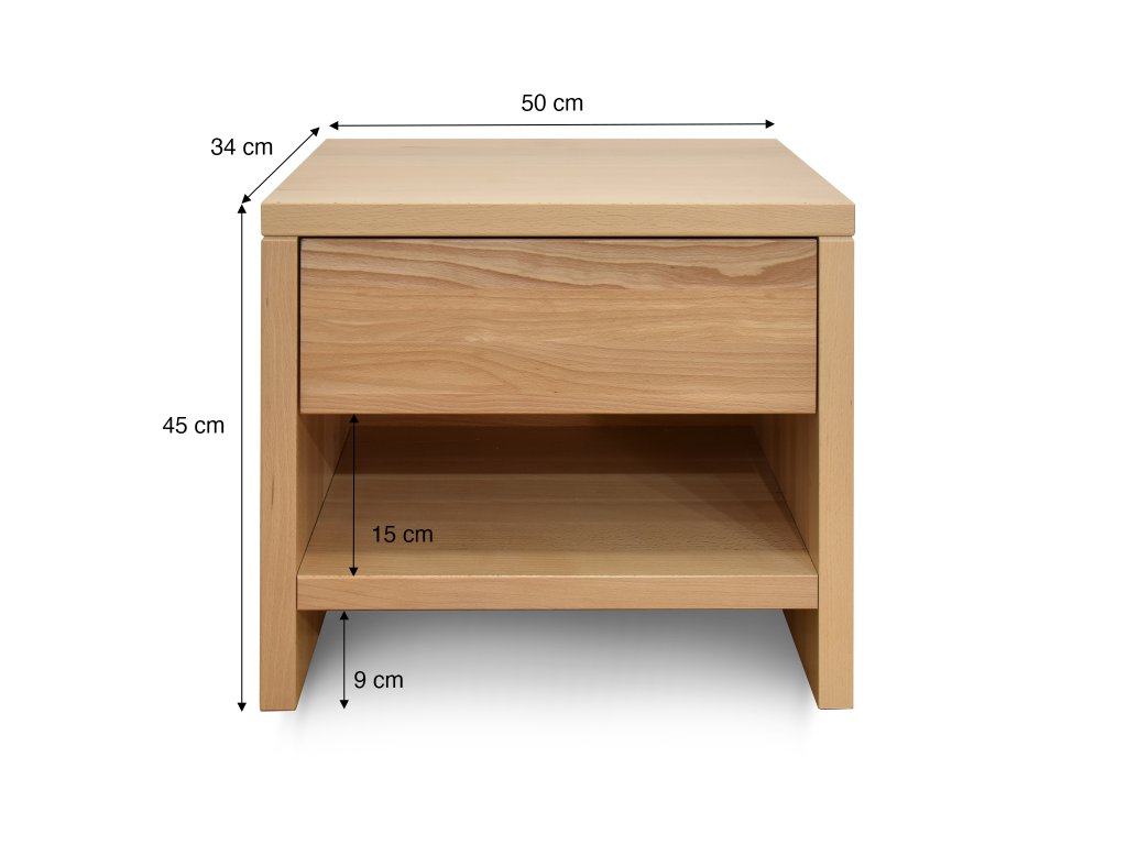 Doplňte vaši ložnici s jedinečným masivním nočním stolkem Xora. Noční stolek je ideálním místem pro uložení věcí, které chcete mít během noci u sebe. Můžete na něj položit knihu, časopis, brýle, hodinky, mobilní telefon, sklenici s vodou nebo jakékoliv další předměty, které potřebujete mít po ruce. Noční stolek je ideální místo pro umístění lampy. Lampička poskytuje přímé osvětlení pro čtení knihy či sledování televize. Je vyroben z masivního bukového dřeva, což zaručuje jeho dlouhou životnost. Náš dřevěný noční stolek navíc disponuje jednou zásuvkou a jednou poličkou. Stolek je moderním a vkusným doplňkem do interiéru vaší ložnice.
