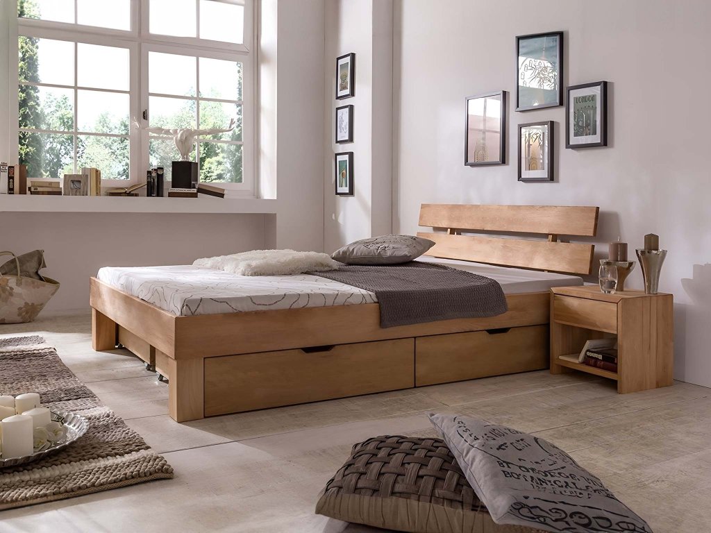 Dřevěný stolek k dřevěné posteli