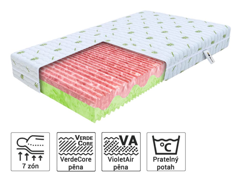 Materiálové složení: VerdeCore pěna, Profilovaná pěna VioletAir