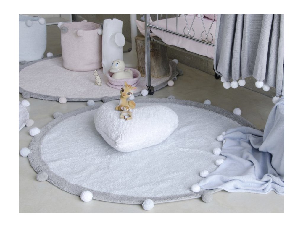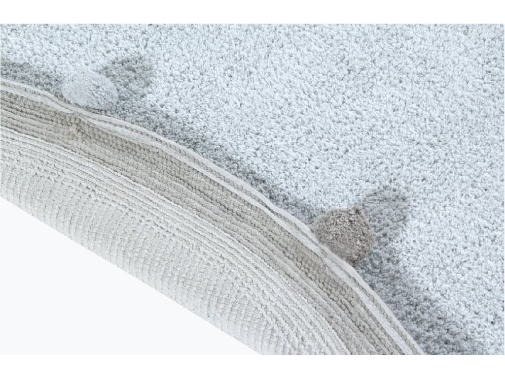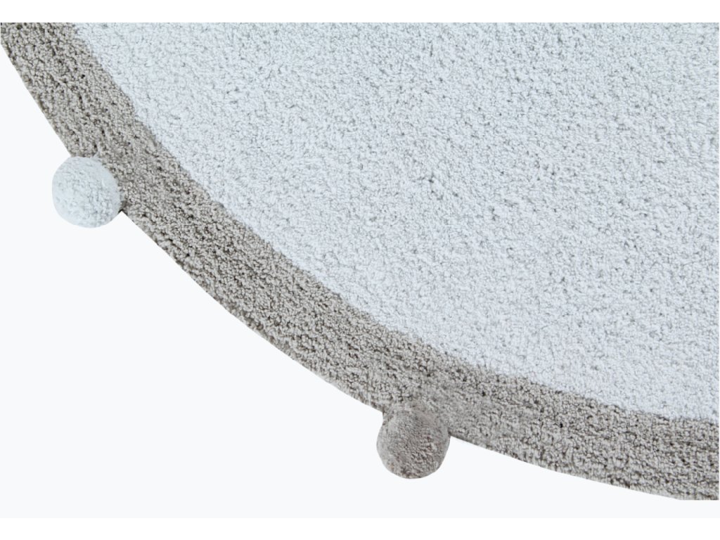 Dětský koberec BUBBLY 120x120 modrý je kulatý koberec s šedým okrajem a brmbolci, vyrobený ze 100% bavlny. Koberec vypadá skvěle v Pro hlučných pokojích, díky jemné a elegantní kombinaci pastelových barev . Ručně vyrobený koberec je pro děti bezpečný, protože se používají pouze přírodní barviva. Má několik certifikátů ISO 9001, ISO 14001 a ISO 18001, jakož i certifikáty AITEX, které zaručují kvalitu zpracování pro zdraví a bezpečnost uživatele. Díky použití bavlny je měkký, lehký a pružný, ideální do dětského pokoje. Dodá interiéru útulnost a moderní design a tlumí zvuky dětí, které po něm běhají.