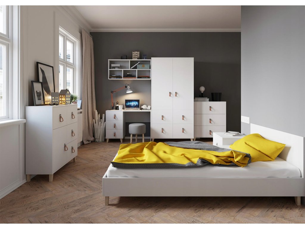 Nábytek v moderním skandinávském stylu. Jednoduchost a minimalismus jsou charakteristické znaky kolekce nábytku ANITA. Světlé barvy budou fungovat v jakémkoli interiéru, ať už v dětském pokoji nebo pokoji pro mládež. Více komponentů umožňuje jakoukoli kombinaci, takže kolekce naplní očekávání každého uživatele. Bílá barva v kombinaci s dřevěnými prvky dokonale osvětlí a opticky zvětší menší místnosti. Nábytek je vyroben z kvalitní laminované desky s tloušťkou 16 mm, která je odolná proti poškrábání, poškození, vlhkosti a vysoké teplotě. Hrany jsou zakončeny ABS dýhou. K produktu je možné dokoupení i jiných kusů nábytkuz kolekce SVEND - BÍLÁ, vytvoříte tak dětský pokoj podle svých představ.