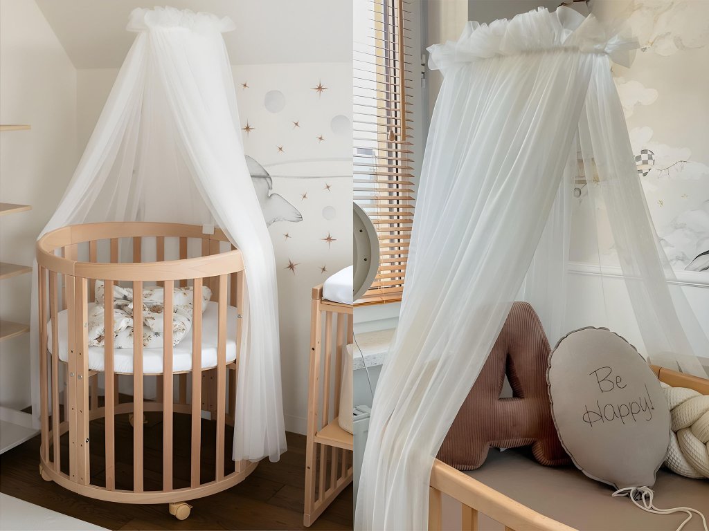 Jemný tylový baldachýn k rostoucí postýlce 7v1