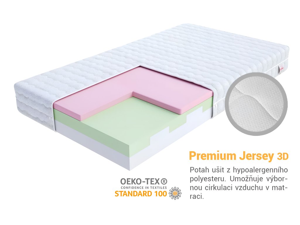 Materiálové složení: Profilovaná HR pěna, Paměťová Visco pěna, Polyuretanová pěna, Potah