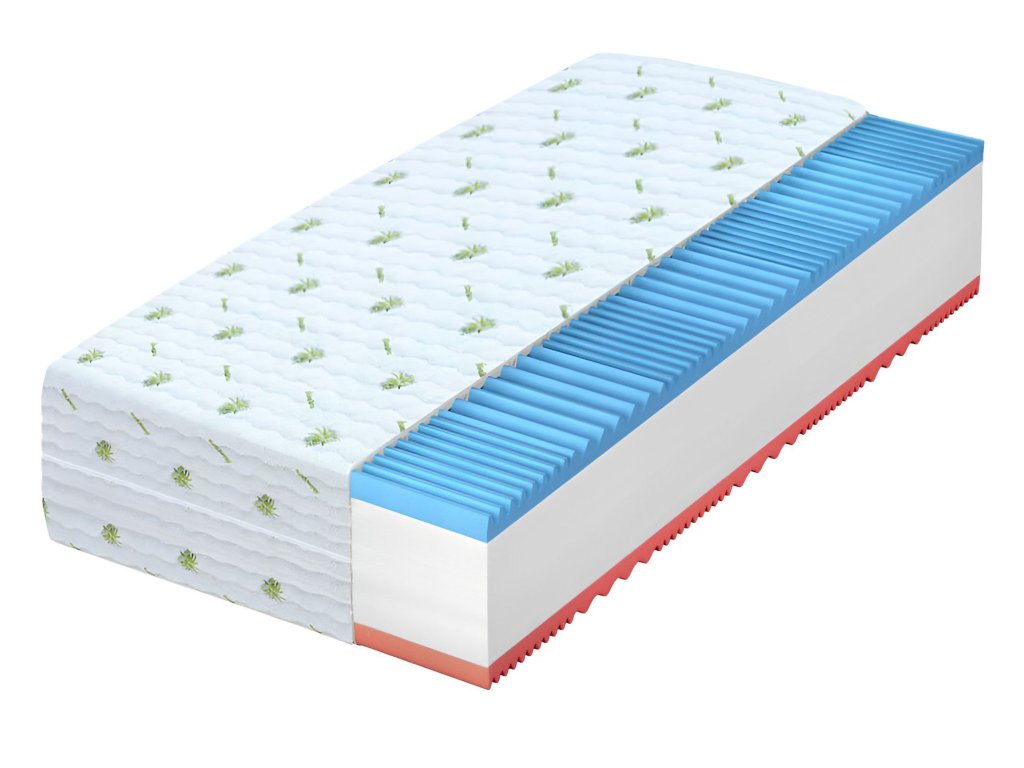 Profilovaná 7-zónová vysoce kvalitní pěna zajišťuje zlepšení prokrvení pokožky a uvolnění svalstva během spánku. Vlivem teploty těla se přizpůsobuje jeho tvaru, čímž zvyšuje pocit dobrého spánku. Díky systému 7 zón tvrdosti nabízí páteři i celému tělu přirozenou polohu a podporu. Tato pěna je vhodná i pro alergiky.