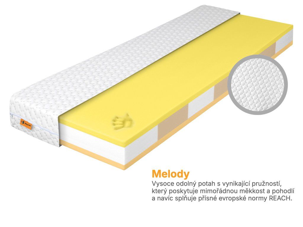 Materiálové složení: PUR pěna, studená HR pěna, paměťová Visco pěna, potah Melody