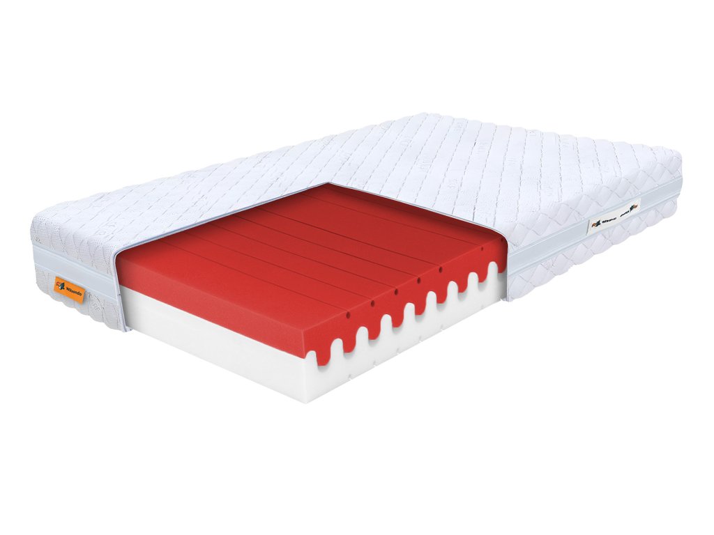 Jádro matrace tvoří pružná polyuretanová pěna T25 s profilovaným povrchem, která se dobře přizpůsobuje tvaru těla a zároveň zajišťuje dostatečnou oporu. Druhá strana matrace je vyrobena z antibakteriální pěny Sanitized®, která aktivně působí proti množení bakterií, plísní a roztočů. Díky tomu vytváří zdravé a hygienické prostředí pro spánek – ideální i pro alergiky.