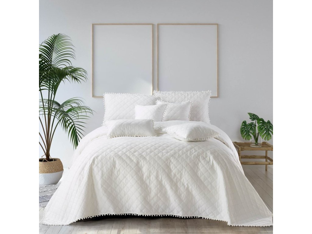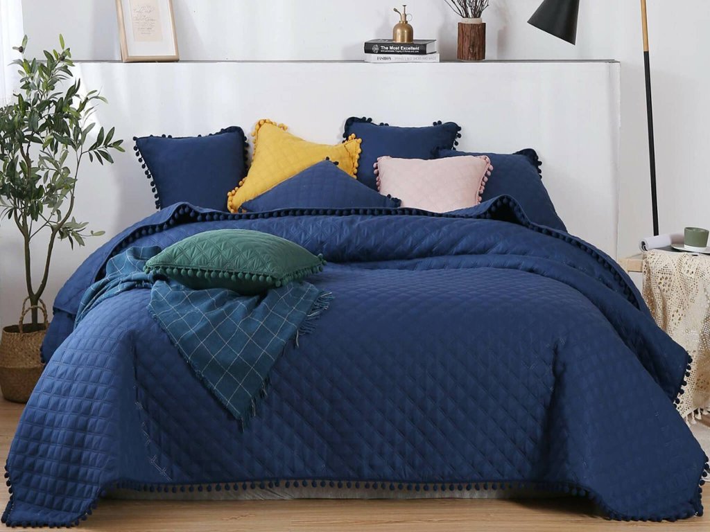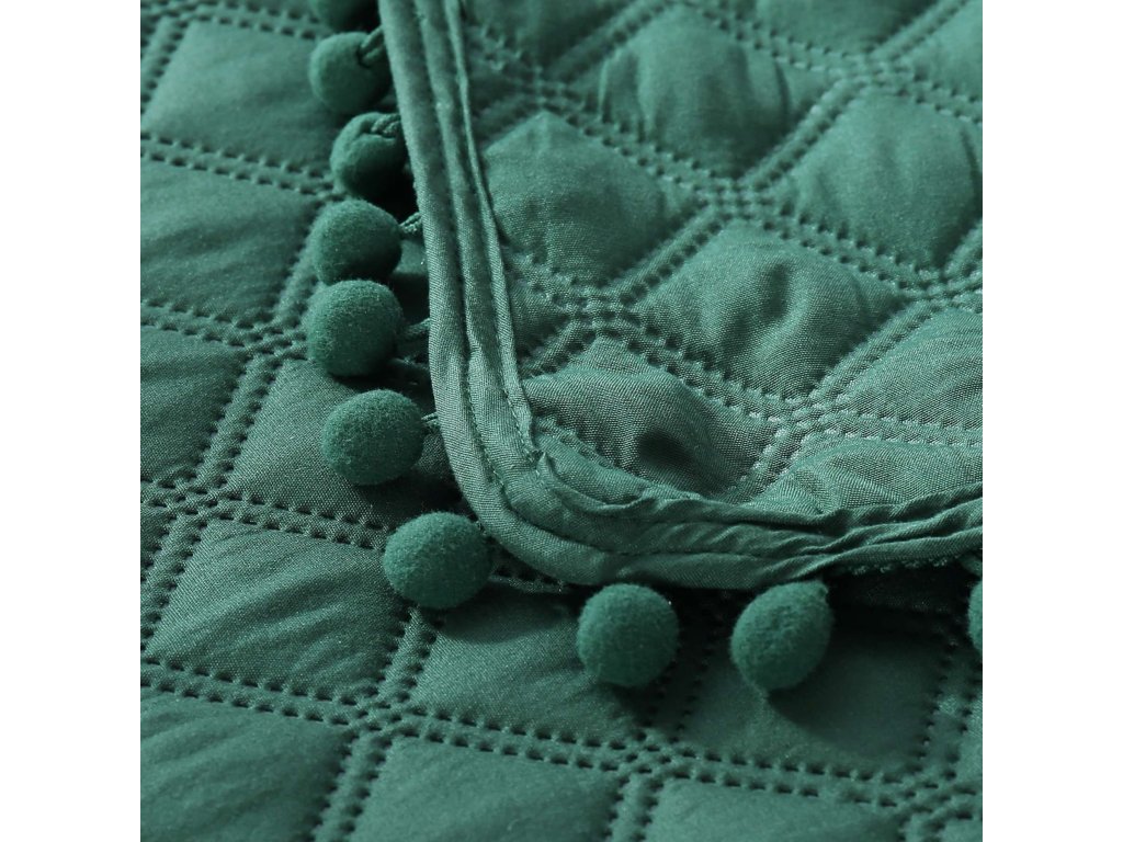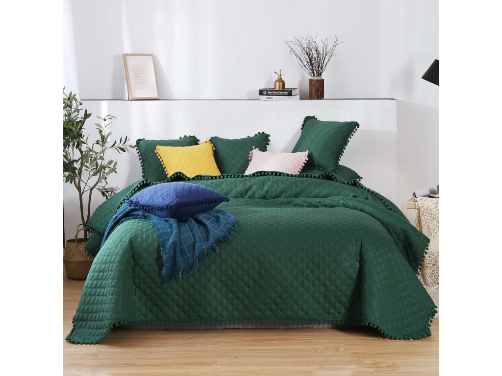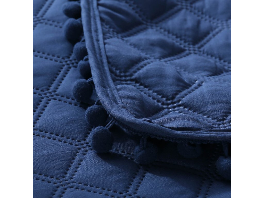 Krásný přehoz na postel je vyroben z matného mikrovlákna. Přikrývka má estetické prošívání, které je velmi pevné a během používání se nerozpadá. Nejen, že je krásným dekorativním prvkem v ložnici, ale zároveň chrání ložní prádlo před nečistotami a prachem. Deka je jednobarevná a okraje jsou ukončeny krásnými bambulkami, které jí dodávají na stylu. Přikrývka má stejný vzor z obou stran. Přehoz na jednolůžko je možné prát na 30°C a žehlit až do 100°C. Neměl by se bělit a sušit v automatické sušičce.