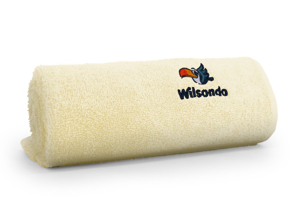 - Nakupujete iz Slovenije? Ta izdelek najdete tudi v naši slovenski spletni trgovini: Brisača z logotipom Wilsondo 50x100 - kremna ↗