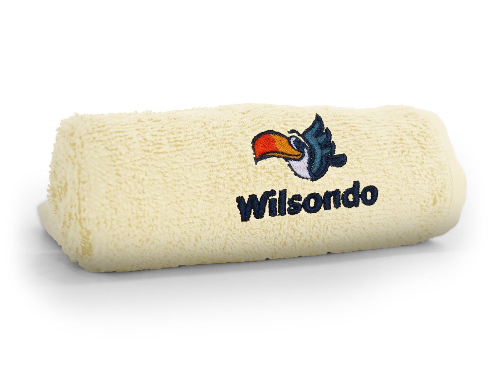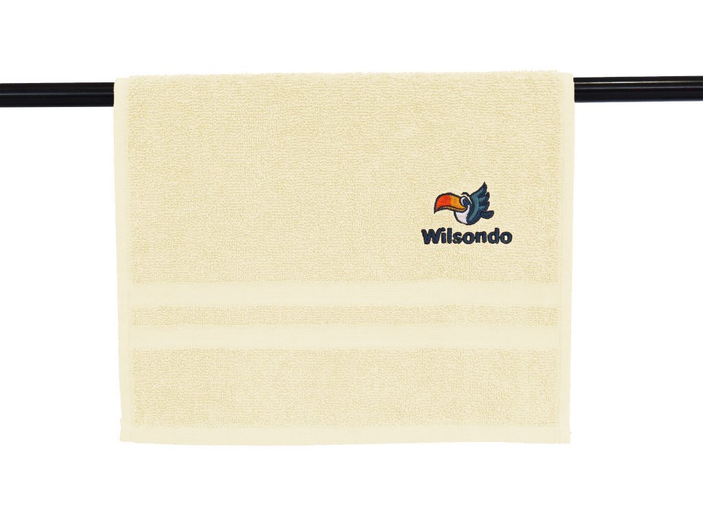 - Nakupujete iz Slovenije? Ta izdelek najdete tudi v naši slovenski spletni trgovini: Brisača z logotipom Wilsondo 50x30 - kremna ↗