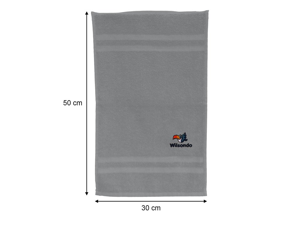 Šedý ručník Wilsondo v menším rozměru 50×30 cm je ideální na ruce, obličej nebo jako cestovní ručník. Díky 100 % froté bavlně s gramáží 400 g/m² je příjemně měkký, dobře absorbuje vlhkost a rychle schne. Kompaktní rozměr se hodí do každé tašky, koupelny či kanceláře. Zesílené poutko a pečlivě obšitý okraj prodlužují životnost ručníku i při pravidelném používání. Elegantní vyšívané logo Wilsondo mu dodává decentní a čistý vzhled.
