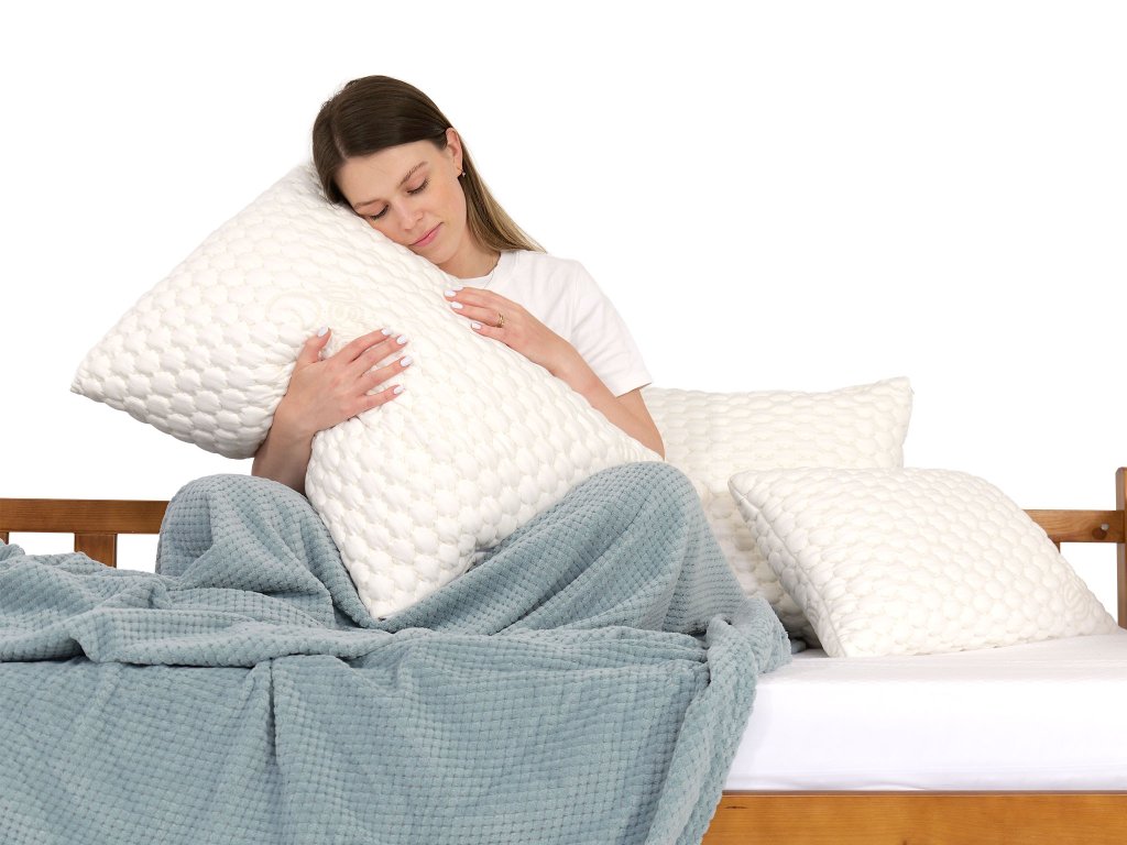 Polštář Henari s viskoelastickou paměťovou pěnou poskytuje optimální oporu krku a hlavy, reaguje na tělesné teplo a tlak, čímž se dokonale přizpůsobí vaší anatomii. Pomáhá předcházet bolestem šíje a ztuhnutí svalů, a zajišťuje přirozené držení těla během celé noci.