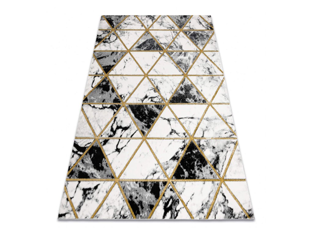 Pokud se váš obývací pokoj nese v glamour stylu je vhodné jej doplnit o koberec, který vám vytvoří teplejší a útulnější prostředí. Koberec Emerald je v šedo-zlaté barvě, který má design mramoru spolu se zlatým prvkem. Zlaté prvky přidávají na eleganci. Středně dlouhý vlas na koberci má 12 mm a jeho údržba je snadná pomocí vysávání. Díky kombinaci polypropylenu a smršťovacího polyesteru je koberec Emerald odolný, oděruvzdorý a příjemný na dotek. Koberec lze bezpečně používat spolu s podlahovým topením. Bude skvělým doplňkem moderních interiérů.