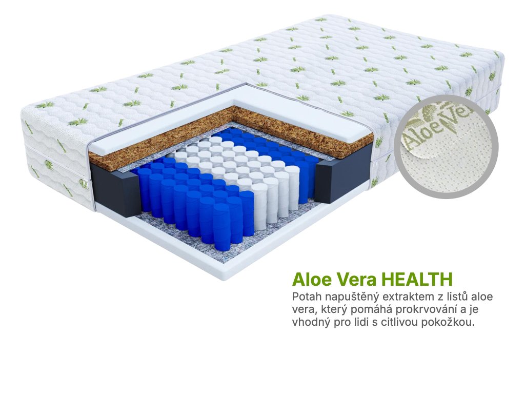 Taštičková matrace Hunt 200x80 cm s kokosem je zdravotní matrace s taštičkovými pružinami v sedmi zónách tvrdosti. Kokosová deska má protiplísňové a antialergické vlastnosti, absorbuje vlhkost a reguluje průtok vzduchu uvnitř matrace. Složení matracových vrstev umožňuje oboustranné použití se dvěma různě tvrdými stranami. Taštičkové pružiny v jádru byly vyrobeny Nano HARD technologií zvyšující životnost pružení a jsou uloženy do 7 anatomických zón pro pohodlné kopírování těla. Pružiny jsou naddimenzovány až o 40 % pro eliminaci rizika zatlačení pružin a každá pružina je v samostatné textilní taštičce. Kokosová vrstva v matraci poskytuje páteři pevnost, oporu a prodlužuje životnost matrace. Přírodní kokosová vrstva je 100% antialergenní, pohlcuje vlhkost a umožňuje matraci ještě lépe dýchat. Matrace má antialergický potah na zip Aloe Vera, který je pratelný v pračce na 30°C.