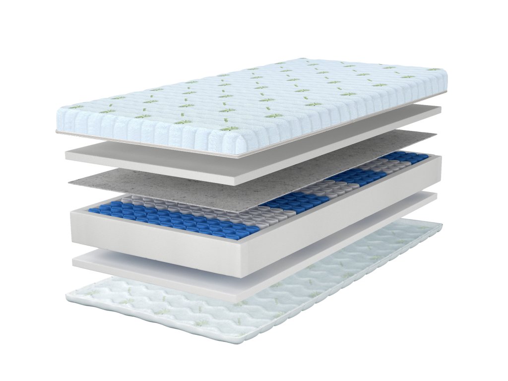 Materiálové složení: Polyuretanová pěna, Taštičkové pružiny, Filc, Potah