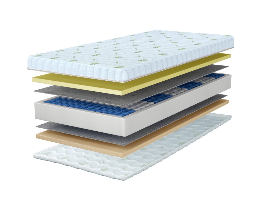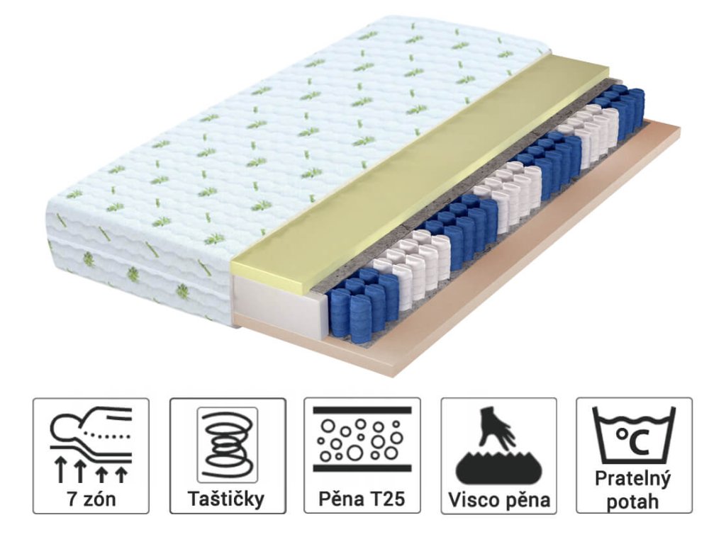 Materiálové složení: Paměťová pěna Visco, Filc, NanoHARD taštičky, Polyuretanová pěna, Potah