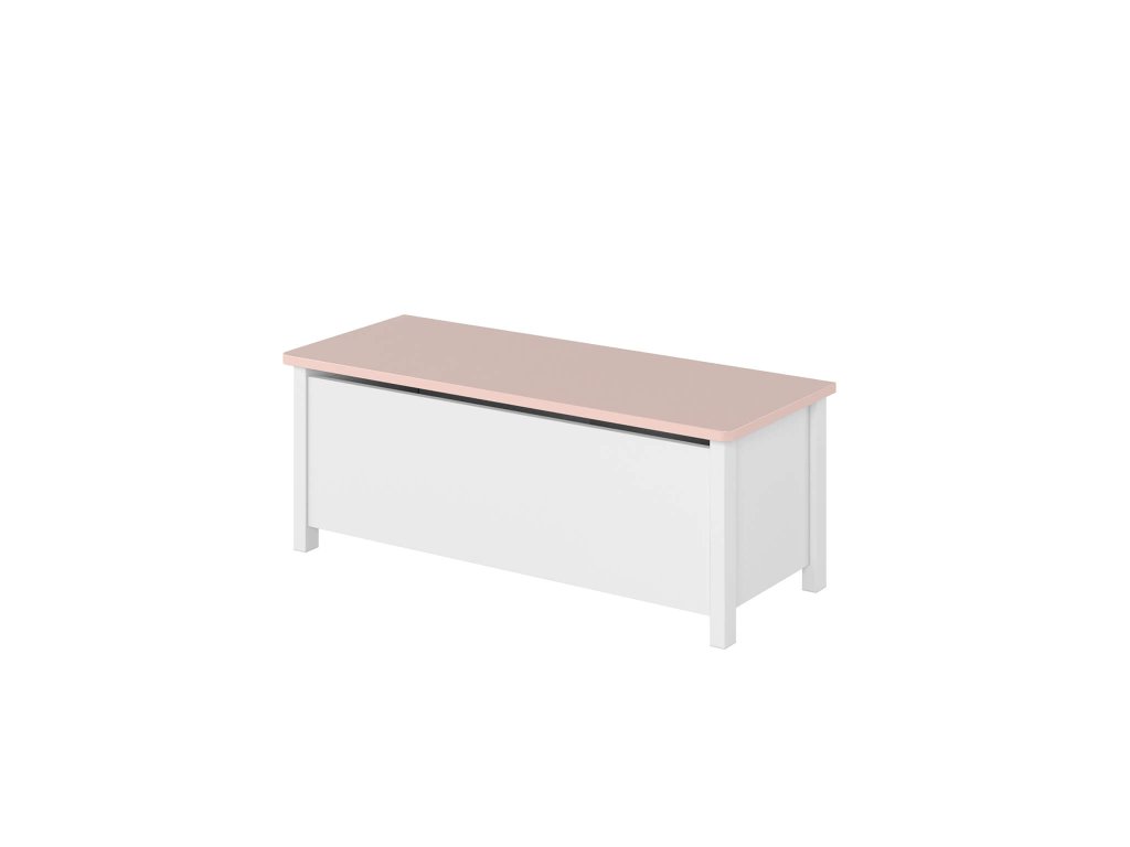 Multifunkční truhla na hračky LUNA si vás získá pěknou barevnou kombinací bílé a pudrově růžové barvy. Postavte si ji k posteli a můžete do ní ukládat nejen hračky, ale i deky nebo prosteradlo. Využívat ji můžete i jako stolek nebo místo na sezení. Truhla je vyrobena z kvalitní laminované desky (DTD) s odolnou ABS hranou.