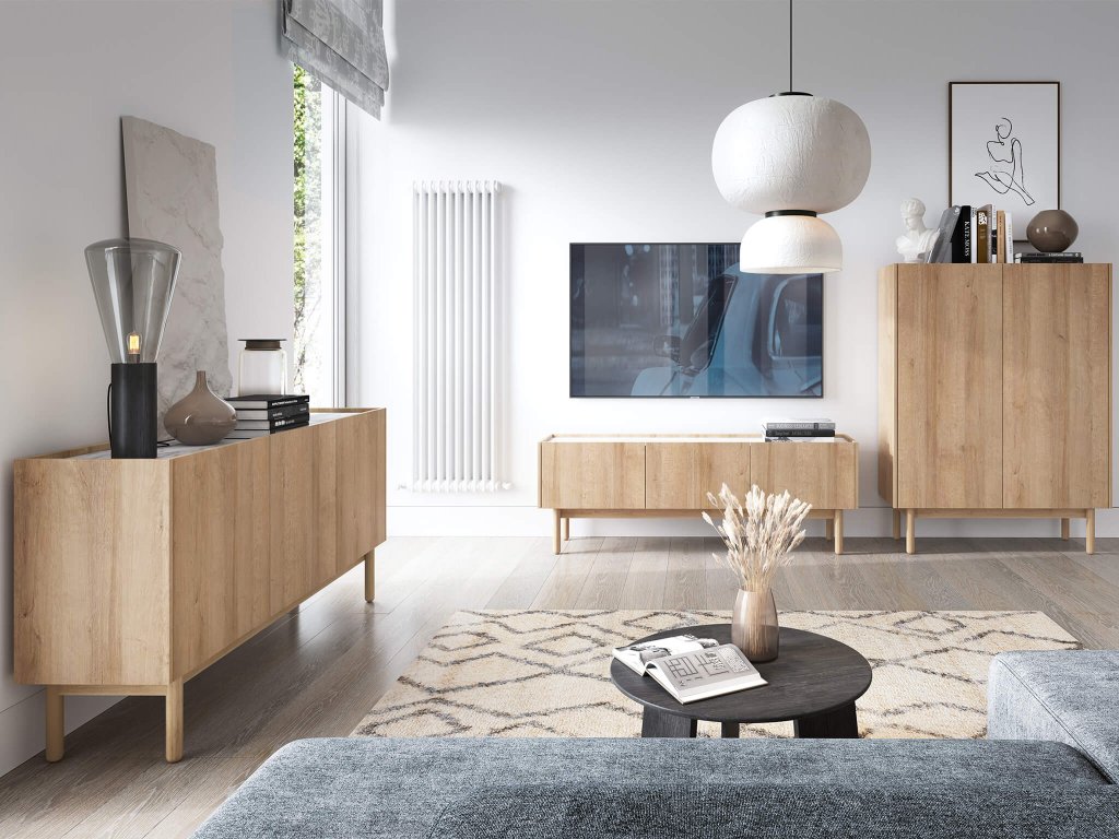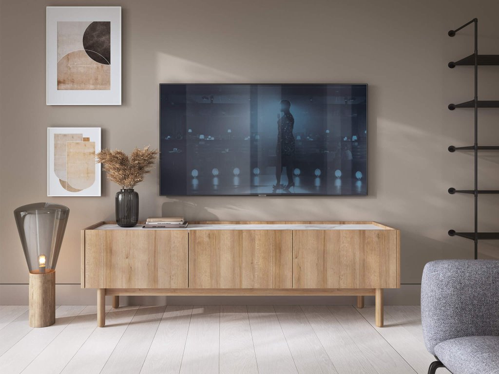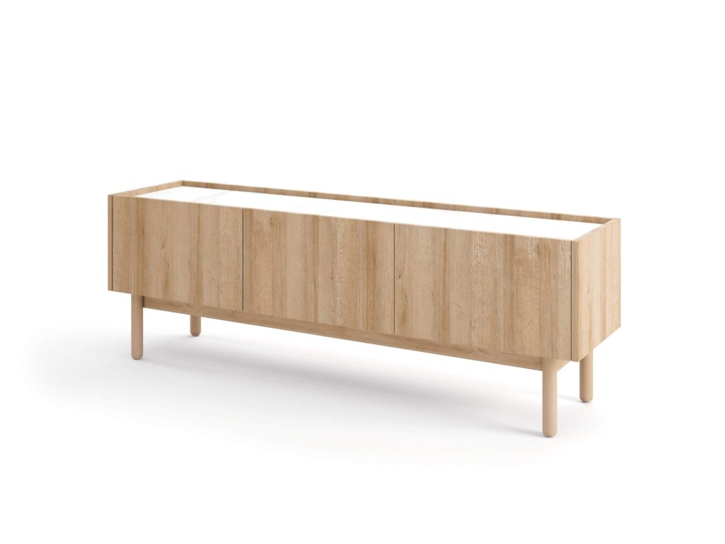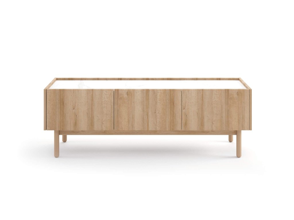 TV stolek BOHO RTV144 bude působit nerušeně a útulně v každém obývacím pokoji. Příjemnou barvu dub riviera v kombinaci s vrchní deskou ve barevném provedení bílého mramoru si hned oblíbíte. Díky jeho bohatému úložnému prostoru v podobě tří skříněk s dvířky si každá věc najde své místo.